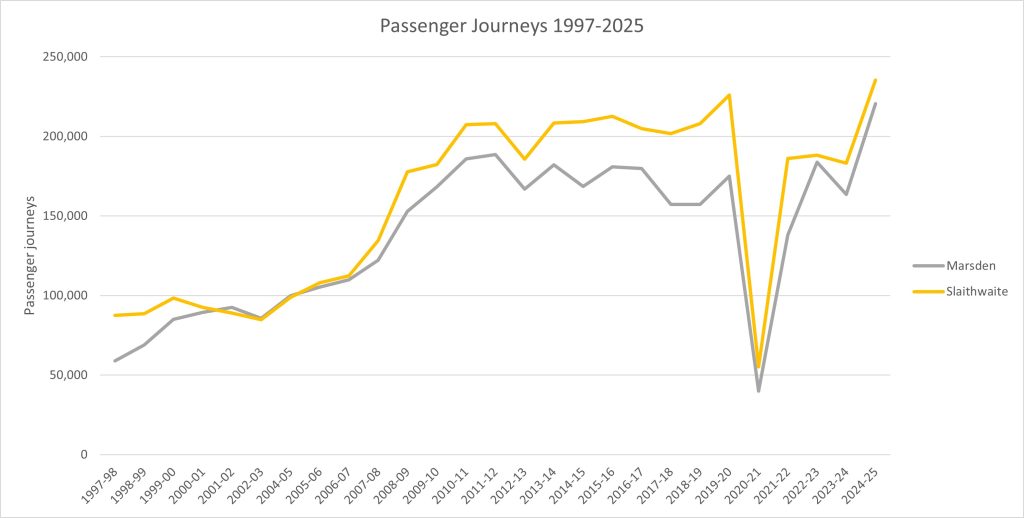 In terms of station performance, Slaithwaite and Marsden stations continue to have some of the worst rail service based on punctuality and cancellations in the country at 2,485th and 2,439th respectively out of 2,638 stations [Source: www.ontimetrains.co.uk].