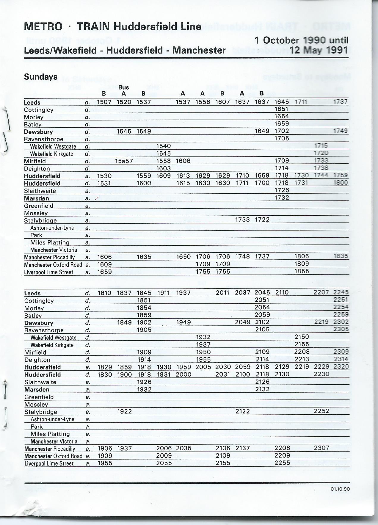 What’s clear is that any commuters from Marsden and (especially) Slaithwaite in the Manchester direction will suffer a reduced peak frequency compared to 1991, where what was previously a half hourly service becomes hourly.