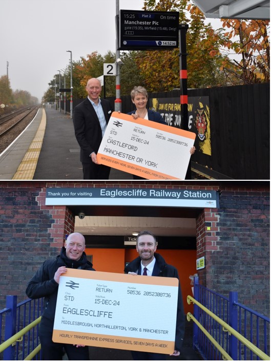 Through services to regional centres are obviously enough of a good thing for TPEs managing director to get a giant ticket made and go to Castleford and Eaglescliffe stations for photo-ops with the local MPs.